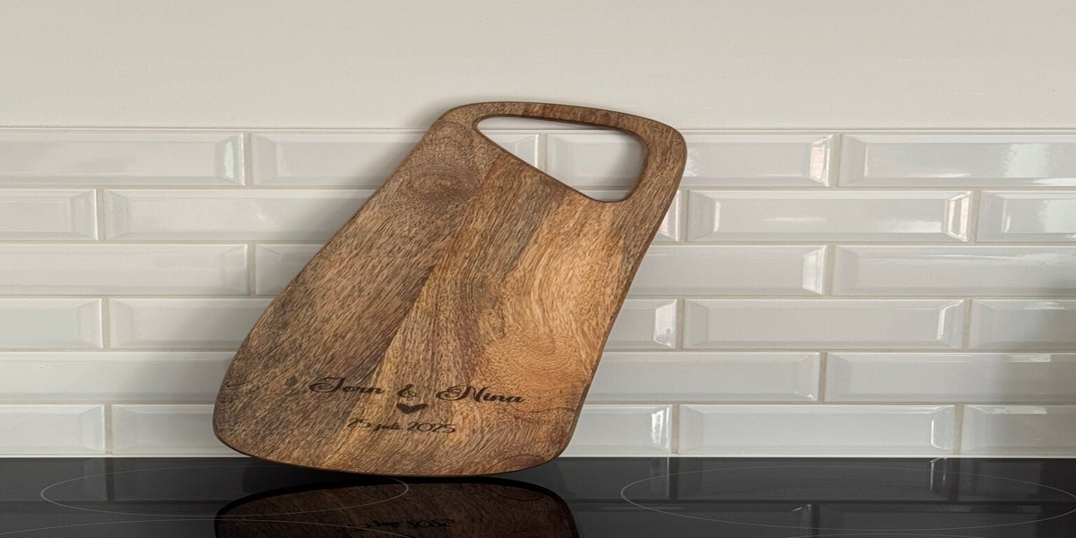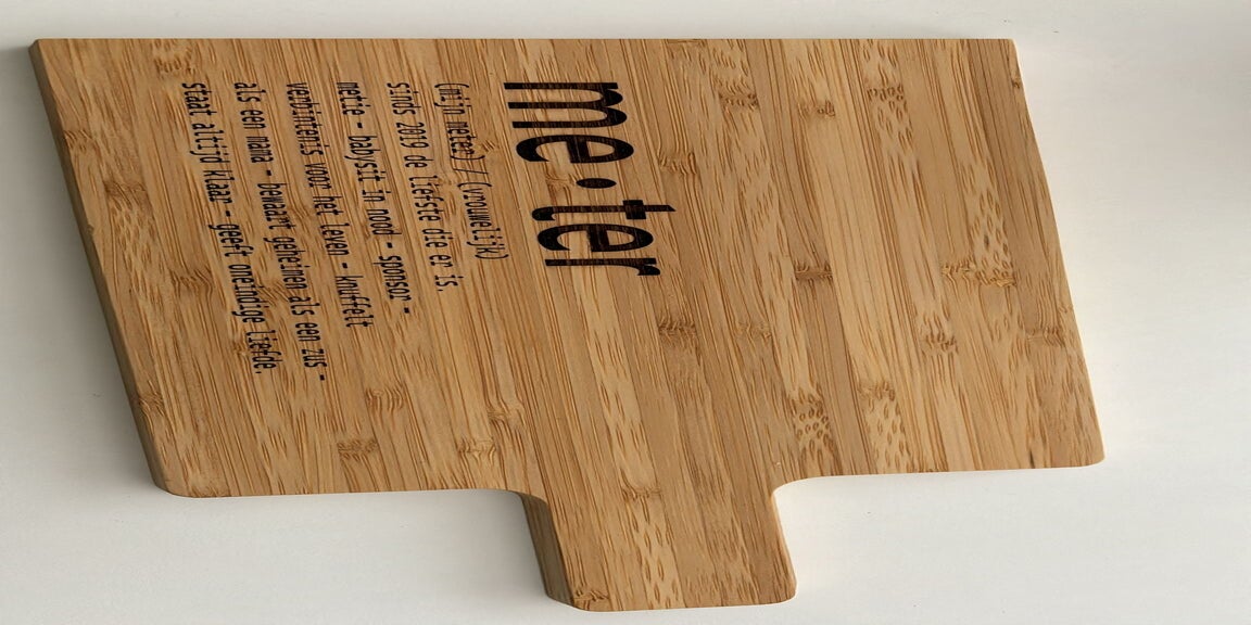 Op de vraag ‘wat kost het om bijvoorbeeld een snijplank te graveren’ kunnen we dus geen standaard antwoord geven. Bezorg je zelf de snijplank(en) of kies je uit ons aanbod? Is het 1 plank of zijn het er meerdere? Graveren we een complex logo, enkele initialen, of een vrij gekozen tekst? Vraag dus vrijblijvend een offerte: laat ons weten wat en hoe en hoeveel je wil laten graveren en wij laten je exact weten voor welke prijs dit kan.