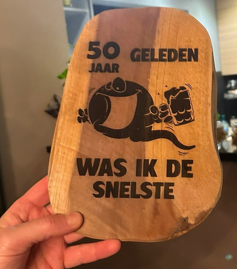 -> een klein teak bord ongeveer 25x17